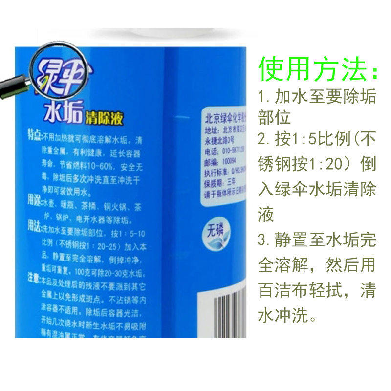 Green umbrella water scale removal liquid 900g * 4 bottles Home electric kettle water heater Go to water scale cleanser water scale scavenger