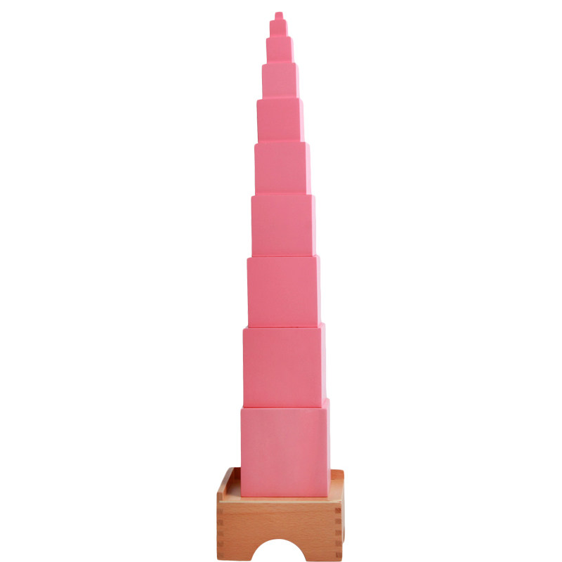cms Monte's sensory teaching aids powder red tower Montemontese Toys Early teaching toys International version of kindergarten configuration mono-Taobao