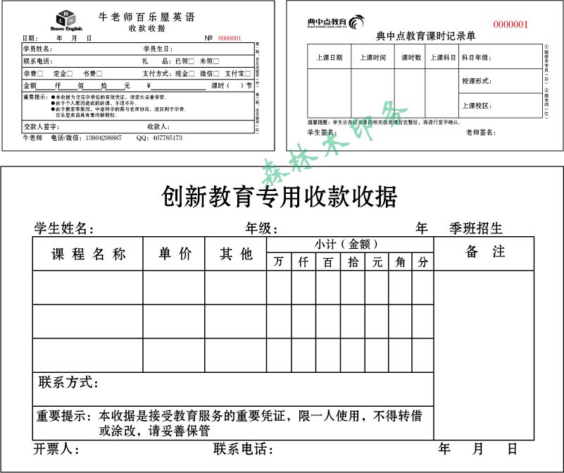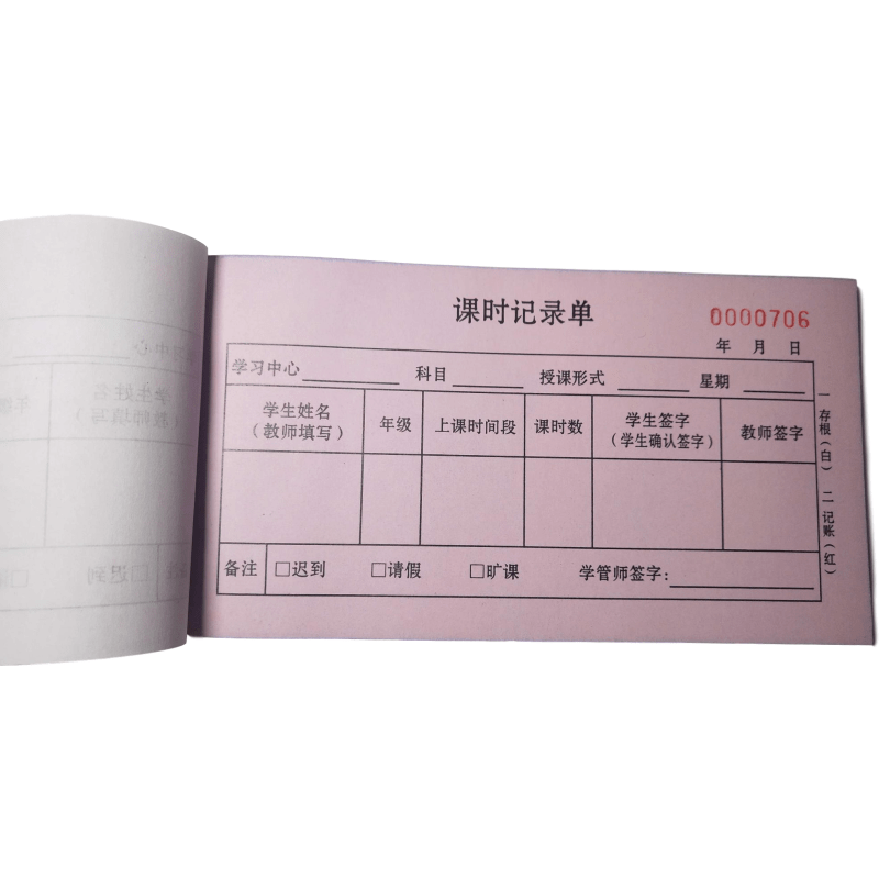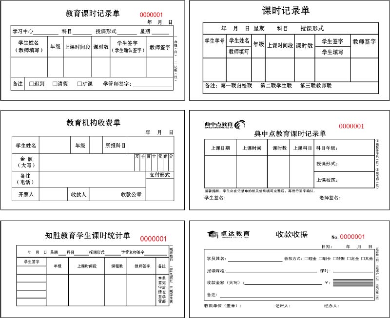 Class time Record Single Custom Education Training Institutions Fees Primary and Secondary School Care Tutoring Collections Receipt Bill Printing