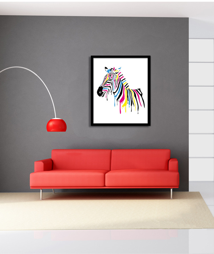 Colour zebra modern minimalist with frame drawing decoration illustrator painting hanging painting fresco small frescoed living room wall painting