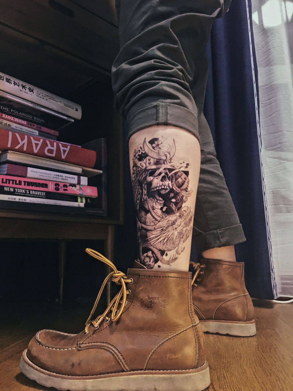 Breaking Wave Tattoo with Japan-like Warrior-like Skull Dragon Flower Arm Calf Cherry Blossom Ghost Nets Red Tone Lasting men and women