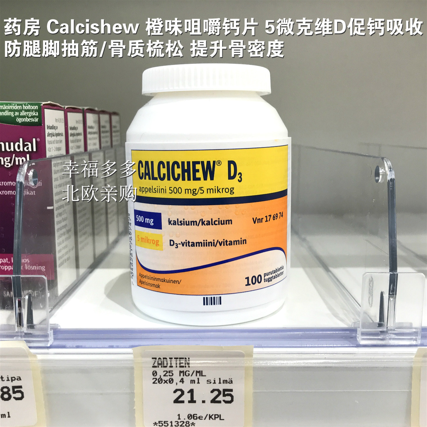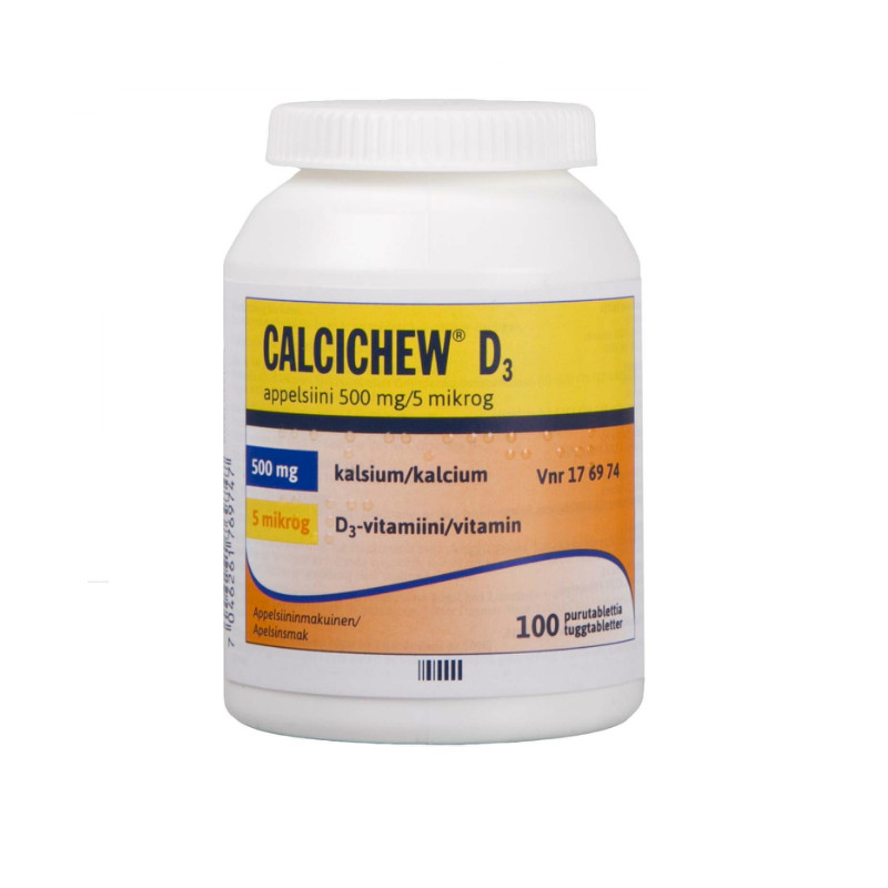 Finnish high-quality pharmacy Calcichew orange chewing calcium tablets 5 micrograms D3