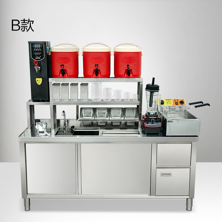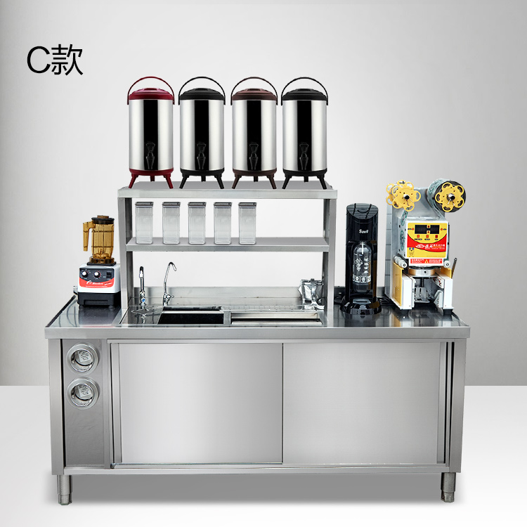 Set to make milk tea Operating table Bench Gon Tea Stainless Steel Water Bar Table Operating Table Refrigerated Milk Tea Shop Equipment Complete