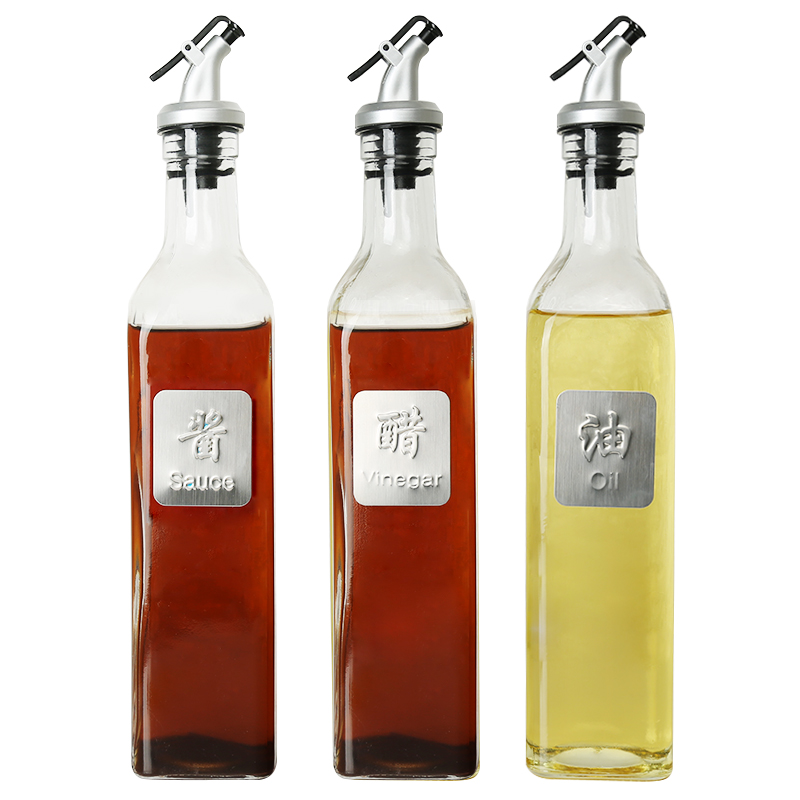 Kitchen seasoning jars Sauce vinegar cooking wine Glass oil pot with label Household covered dustproof and sanitary
