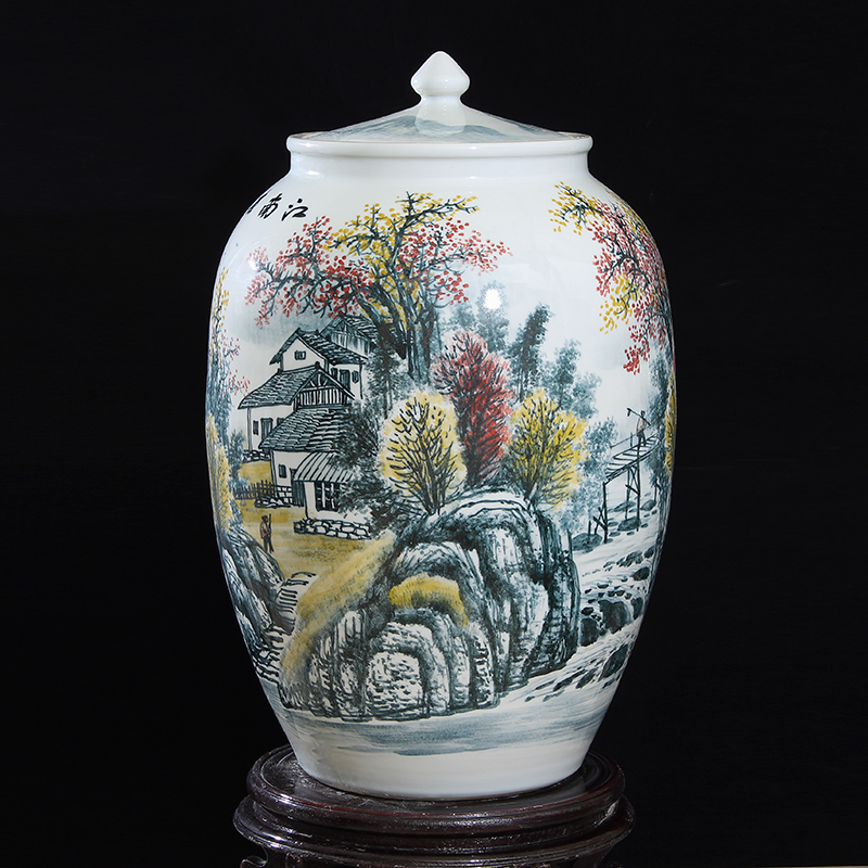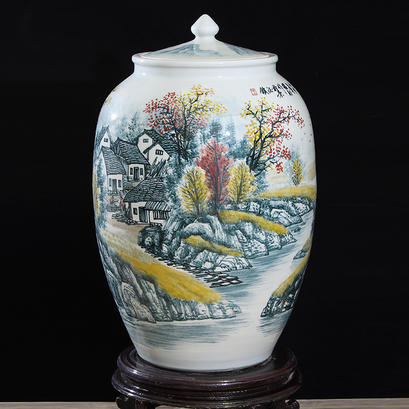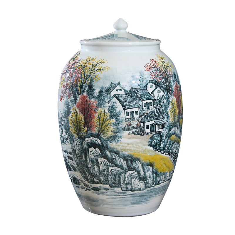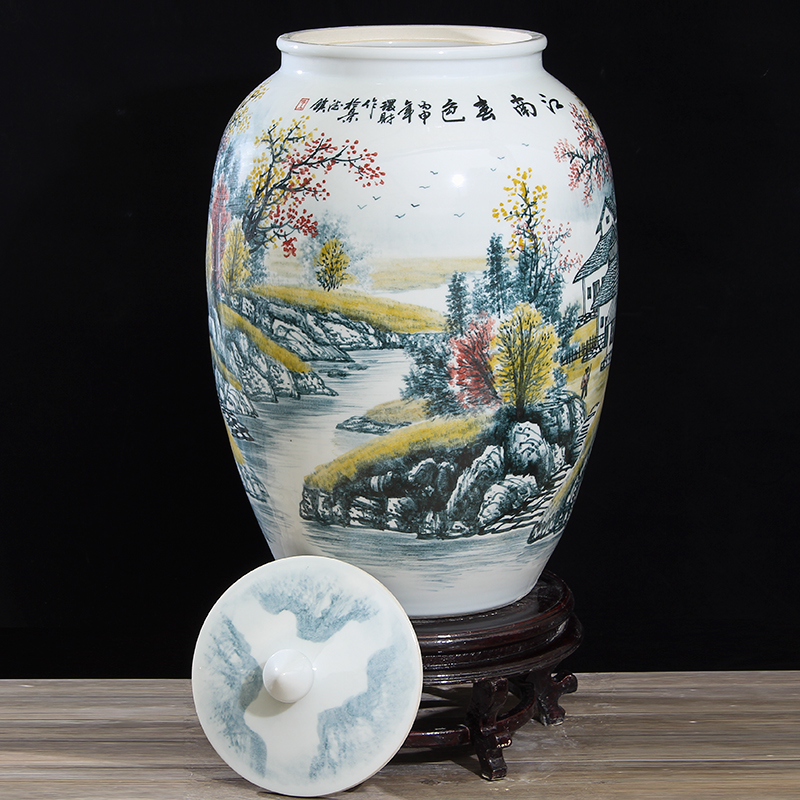 Jingdezhen Ceramic rice cylinder rice barrel with lid face cylinder storage tank wine Fermented Vat Water Cylinder 50 50 Catty 100 Catfish