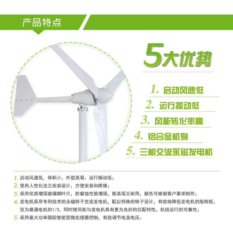 1KW 1 5KW 2KW small wind power generator home wind energy scenery complementary