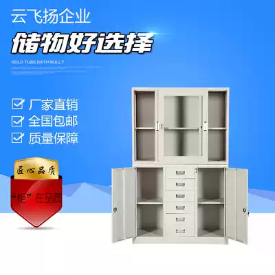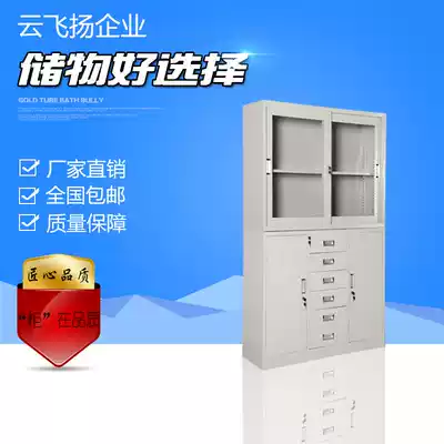 Wide six-bucket Door Door Cabinet two-piece upper glass and lower iron file cabinet iron file cabinet metal storage cabinet file cabinet file cabinet