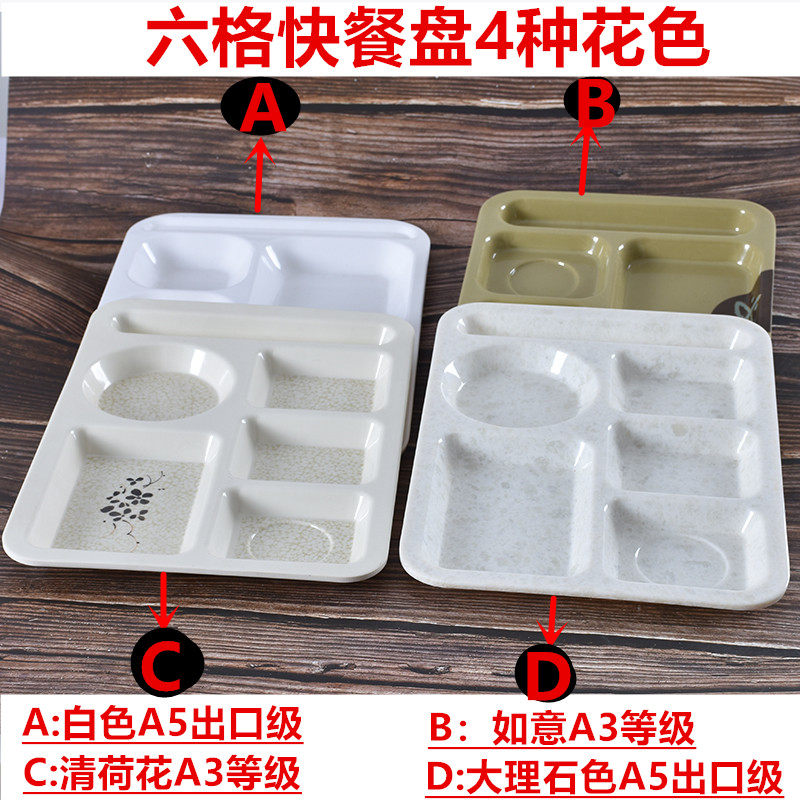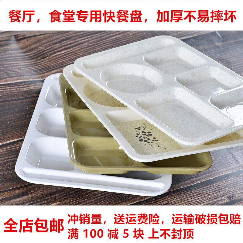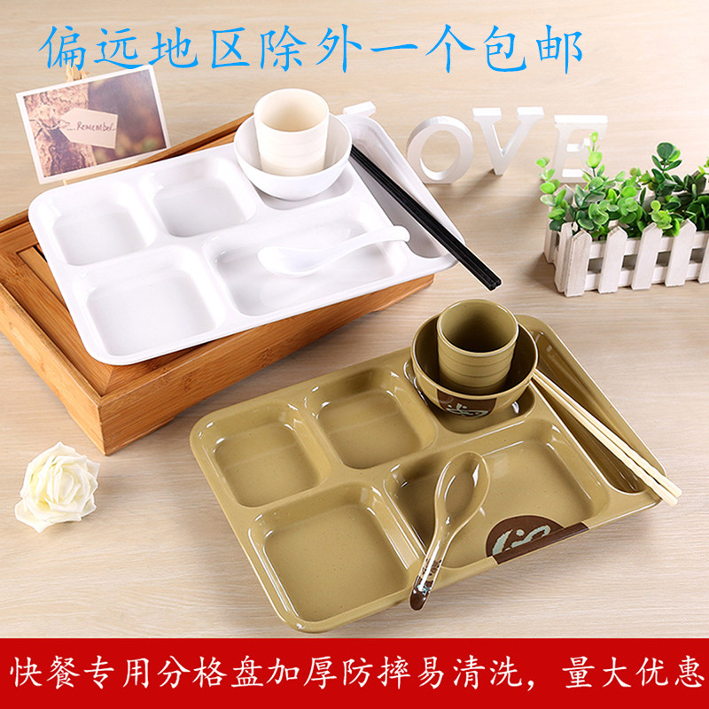Drop-proof rectangular fast food canteen tableware Commercial plastic plate Multi-grid plate Student set plate melamine