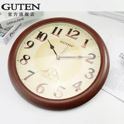 Golden Bell Wall Clock Living Room Mute 16-inch Round Bird Sing Time Home Fashion Decorated Quartz Clock