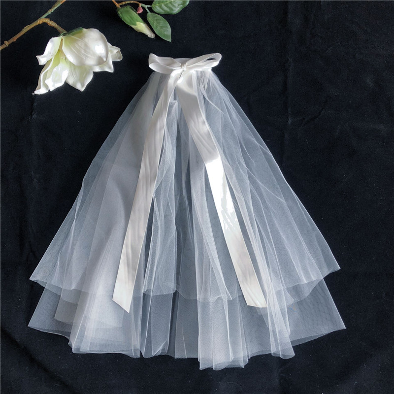 Veil headdress Super Xian Sen department veil net red photo props Bride main wedding pearl collar card large light bow
