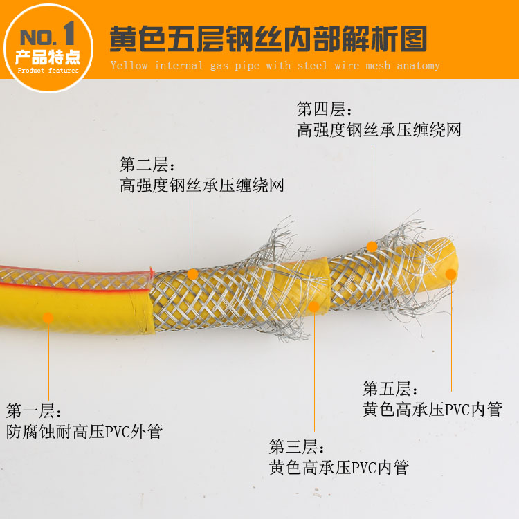 Clearing household with steel wire gas pipe five layers of high-pressure gas pipe cooker hose