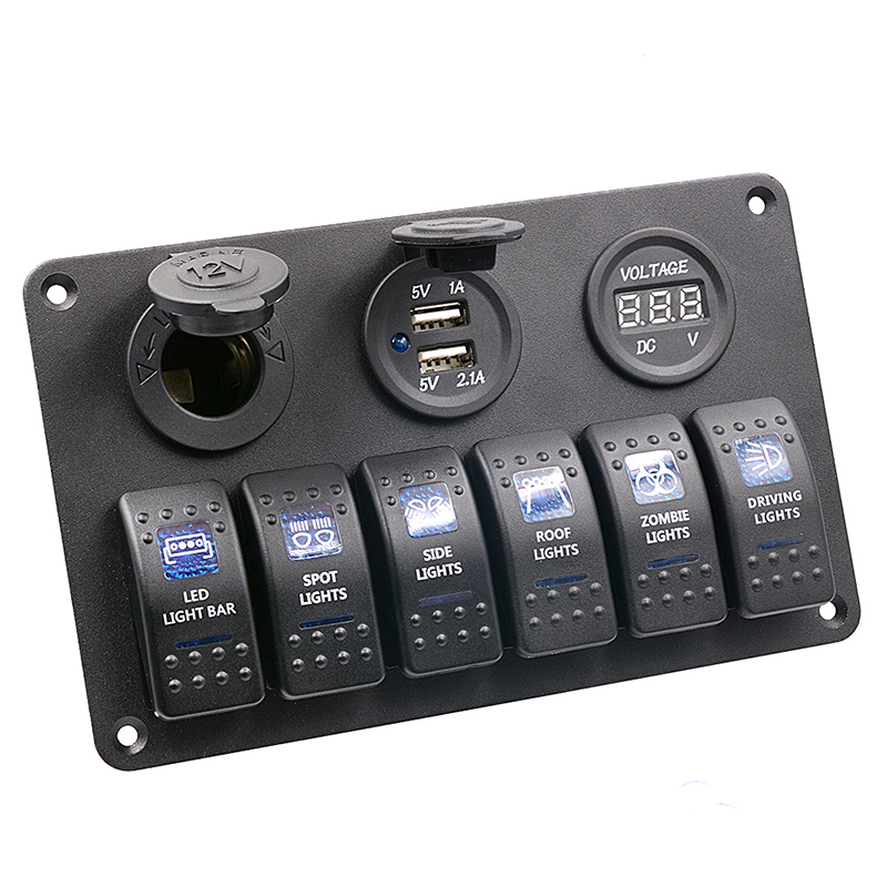 12V 12V seats usb voltmeter 6-position boat panel 12V with lamp holder Aperture Usb Color Screen Voltmeter