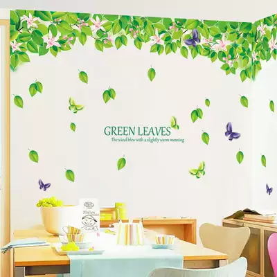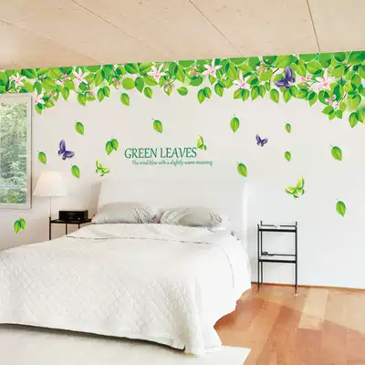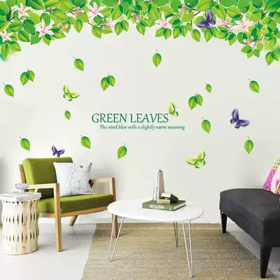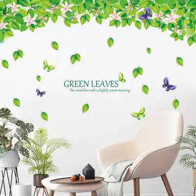 Fresh green leaf wall stickers Bedroom room warm living room background wall decoration stickers wallpaper wallpaper self-adhesive painting