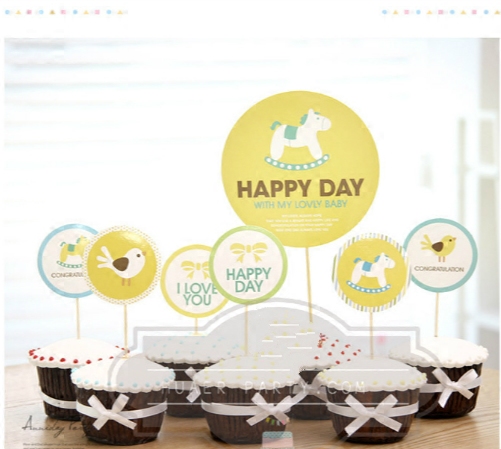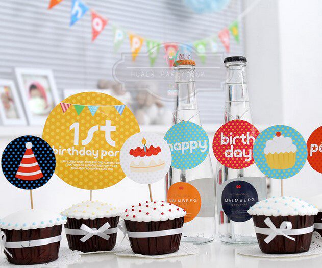 Children's birthday cake decorated with flags inserted in children's birthday 100-day dinner for the baby gathering dessert decorations