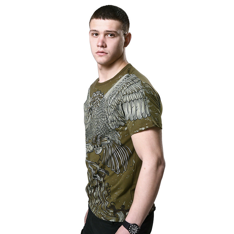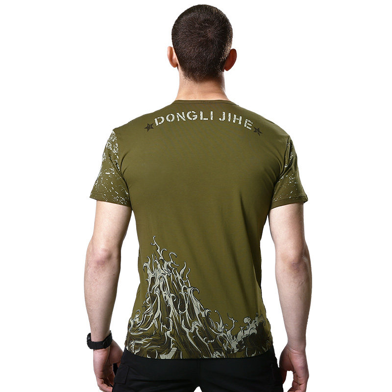 CQB player natural outdoor short-sleeved men's outdoor sports slim fit wild personality pattern round neck T-shirt green army fan