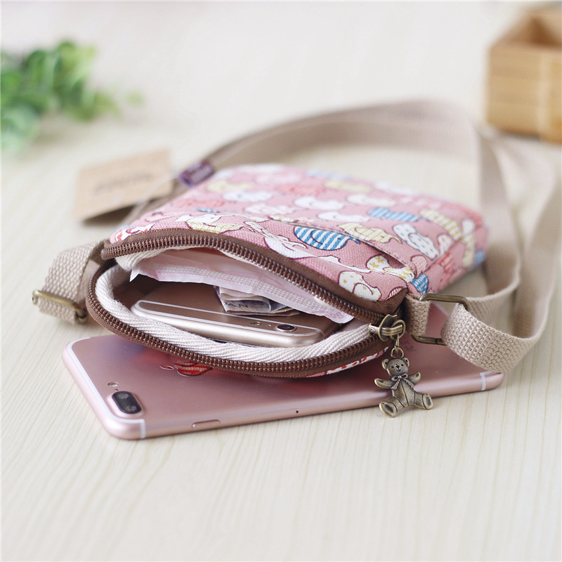 Summer Small bag Girl 2021 new Korean version Canvas Art Slanted Satchel Mini phone bag Zero money bag