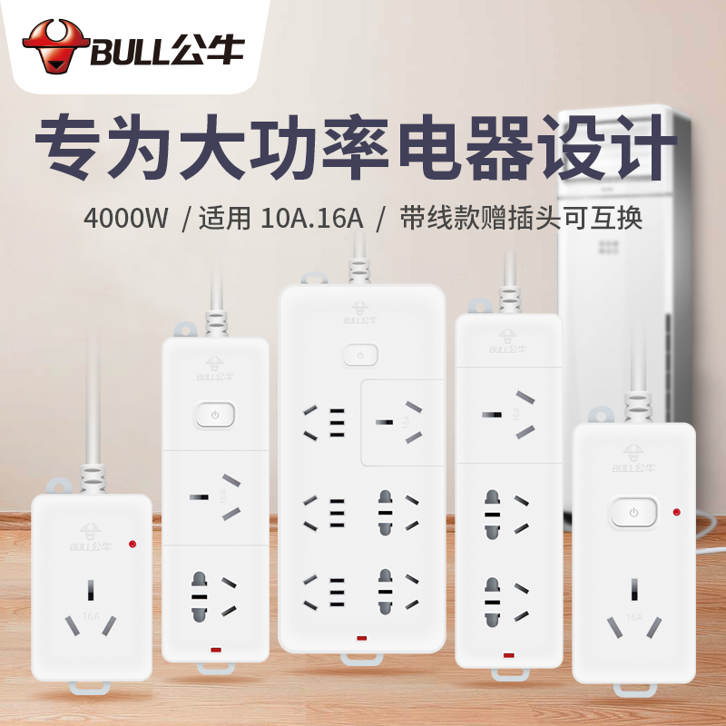 Bull 16a to 10a air-conditioning special socket 16-an high-power large three-hole plug-in board extension line plug-in row