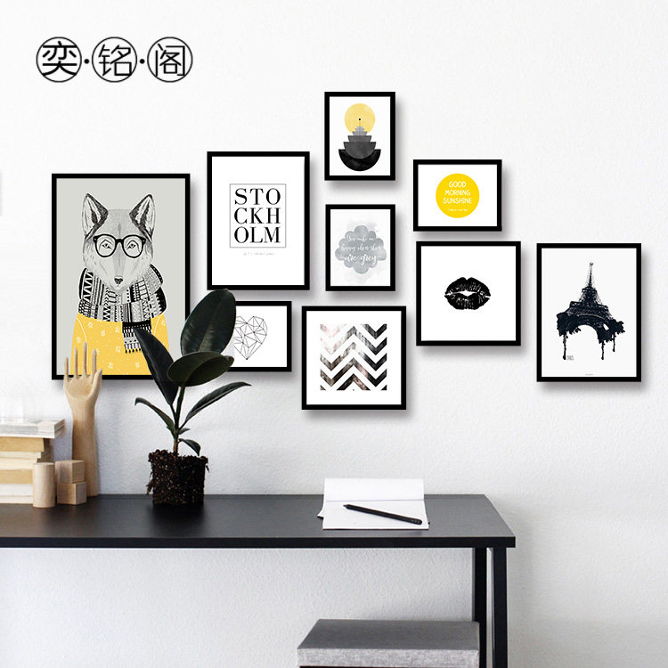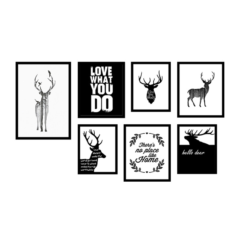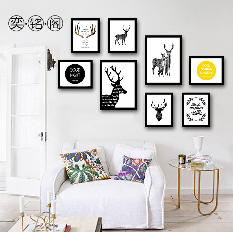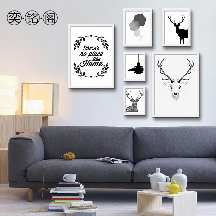 Modern minimalist Nordic decoration painting living room black and white headboard hanging picture bedroom creative composition photo wall painting deer mural