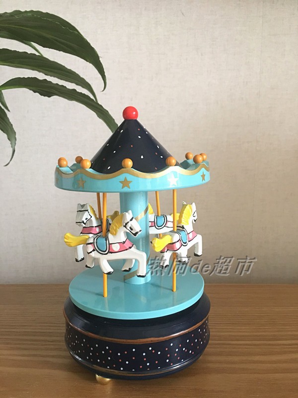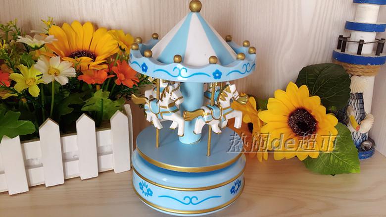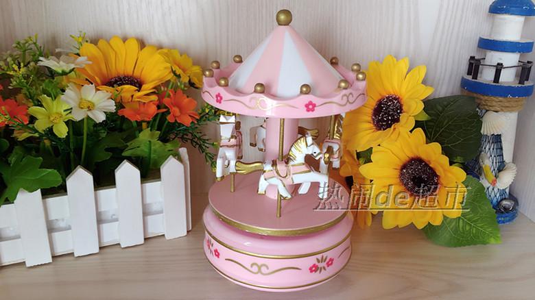 Merry-go-round music box birthday cake decoration decoration baking plug-in creative music box gift Wood