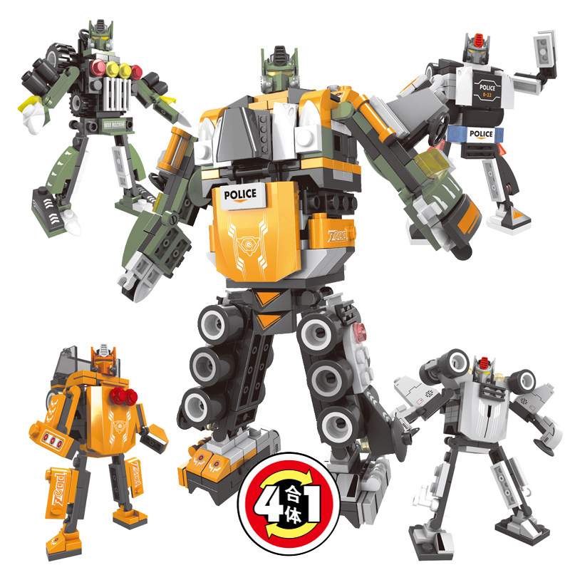 Smart boy puzzle building block Accumulation Team 3 All-in-one Deformation Robot assembly of four combined children gifts-Taobao