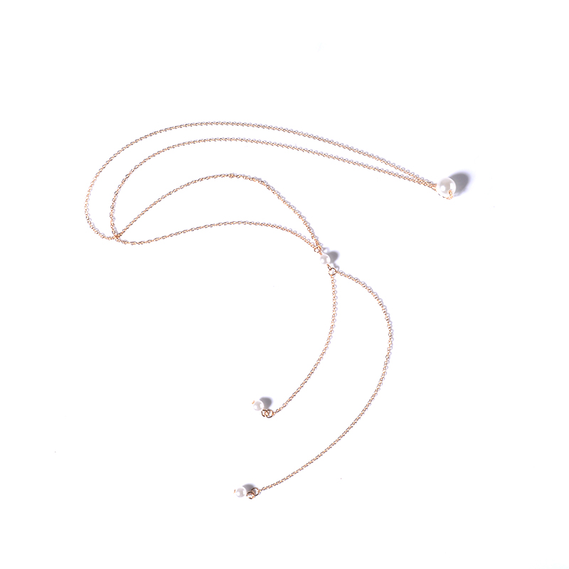 European and American simple pearl metal necklace woman sexy fashion asymmetrical pendant flow suchback chain ornament
