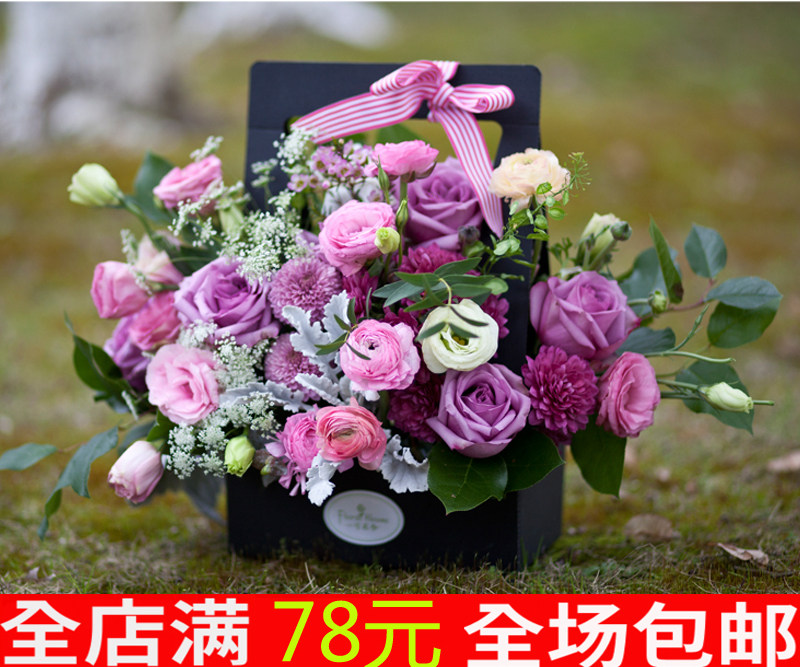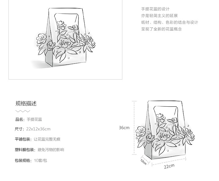 10 handcuffs boxes of flower packaging materials florist shopping products with waterproof flower blue Mother's Day flower basket