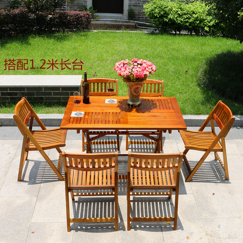 Balcony solid wood table and chair folding chair garden courtyard 1 set, 2 chairs, 4 chairs, preservative wood leisure chair, outdoor table and chair combination