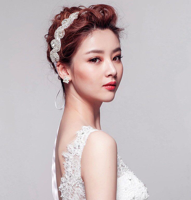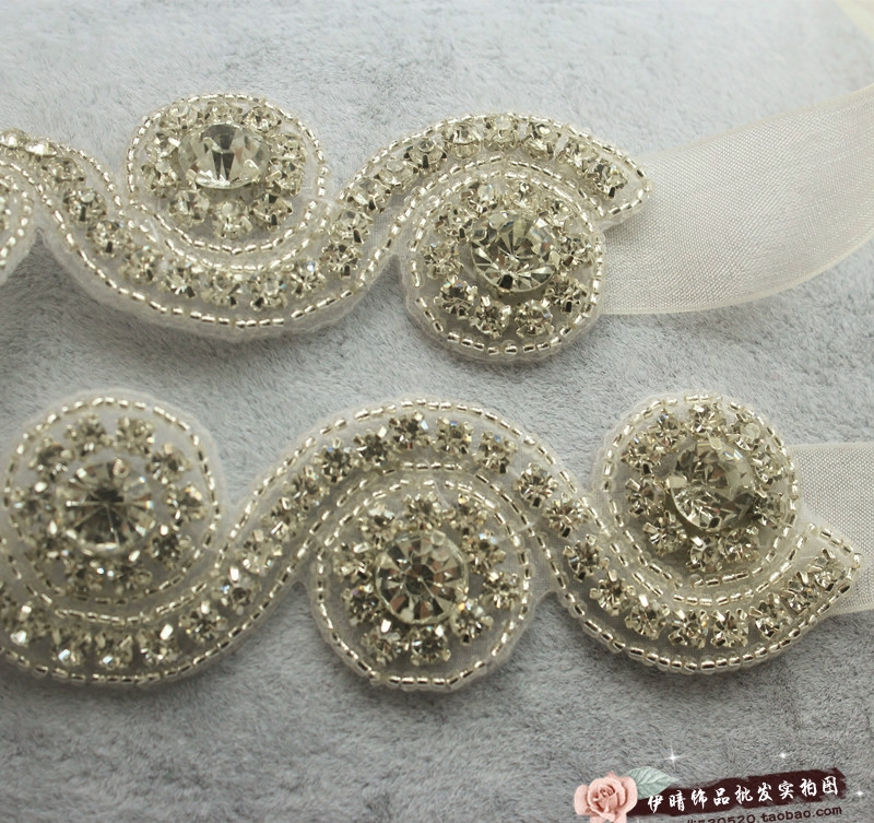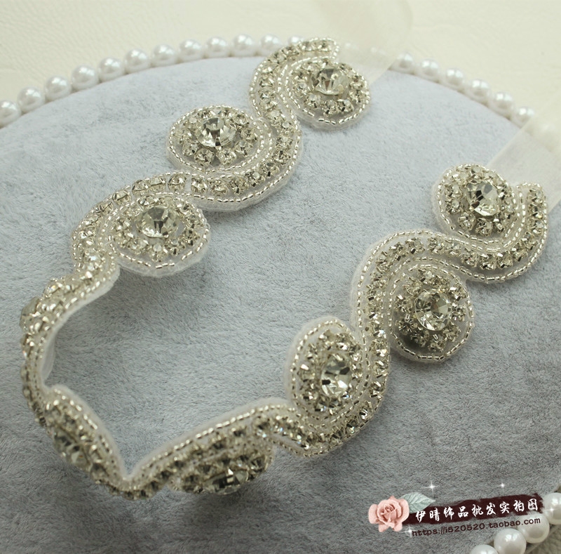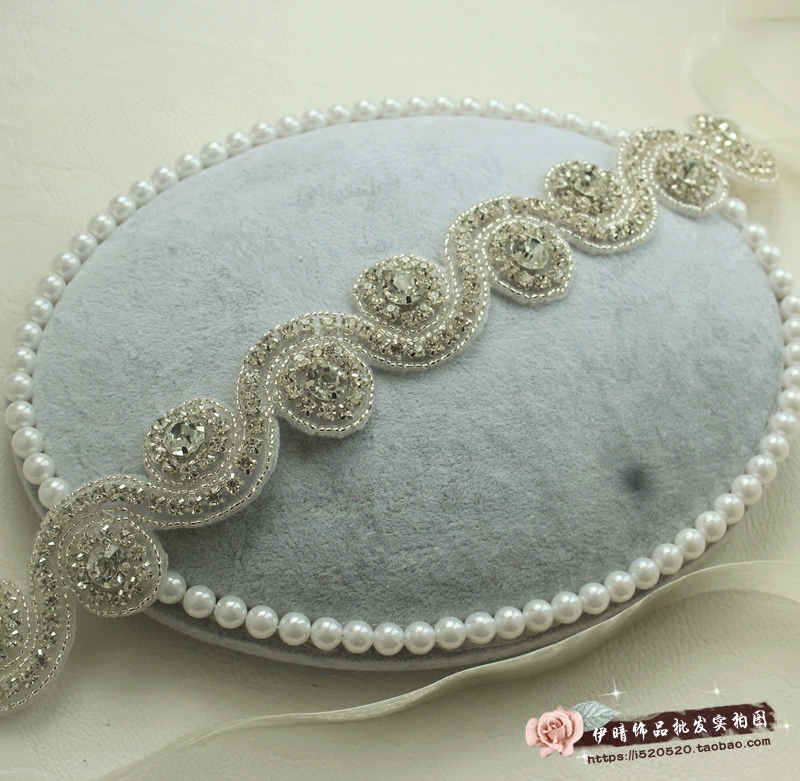 Simple atmosphere European and American bride hair drilling with white ribbon hair strap hand sewing ultra-flash wedding accessories