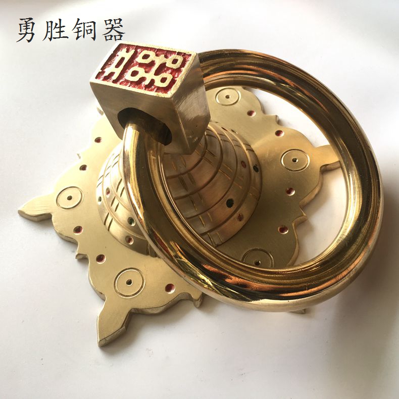 Chinese pure copper door ring handle imitation ancient gate bronze door cymbal courtyard door large round ring handle with happy words hexagonal-Taobao