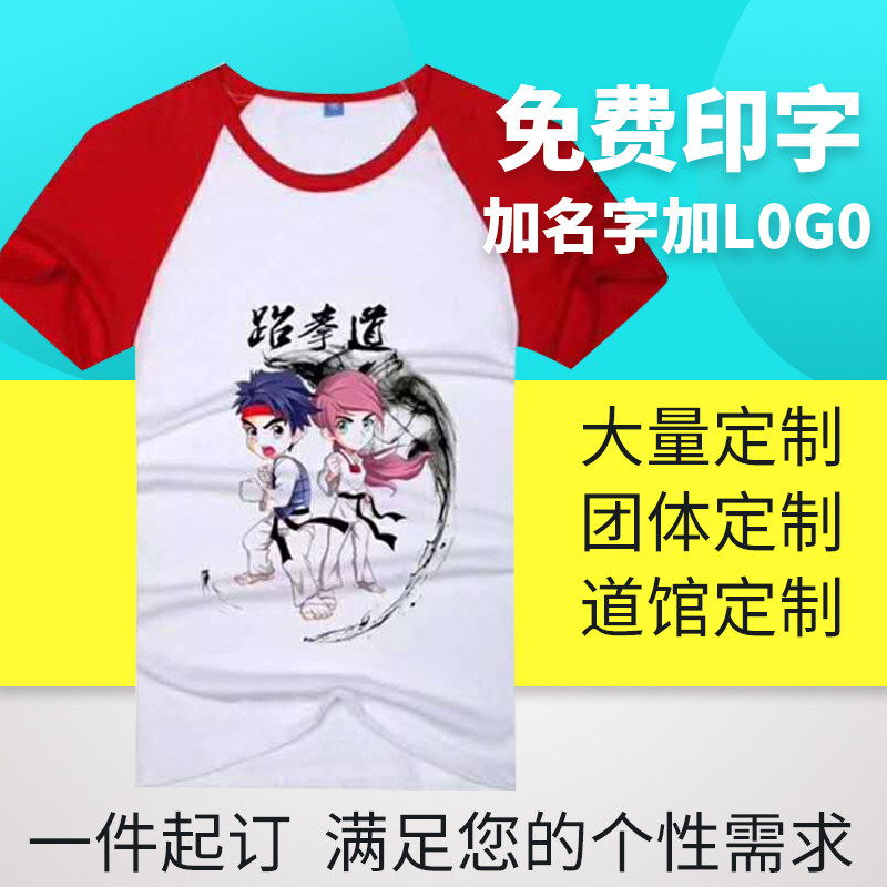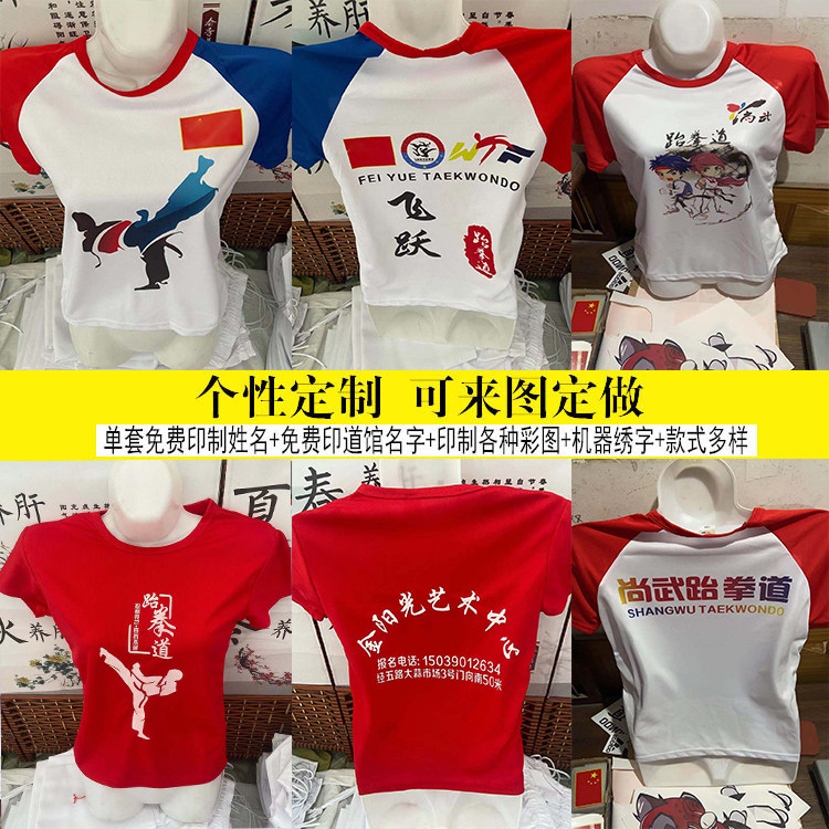 Taekwondo T-shirt Adult Children Training Short Sleeve Summer Advertising Jersey Speed Dry Clothes Pure Cotton Culture Cardigan