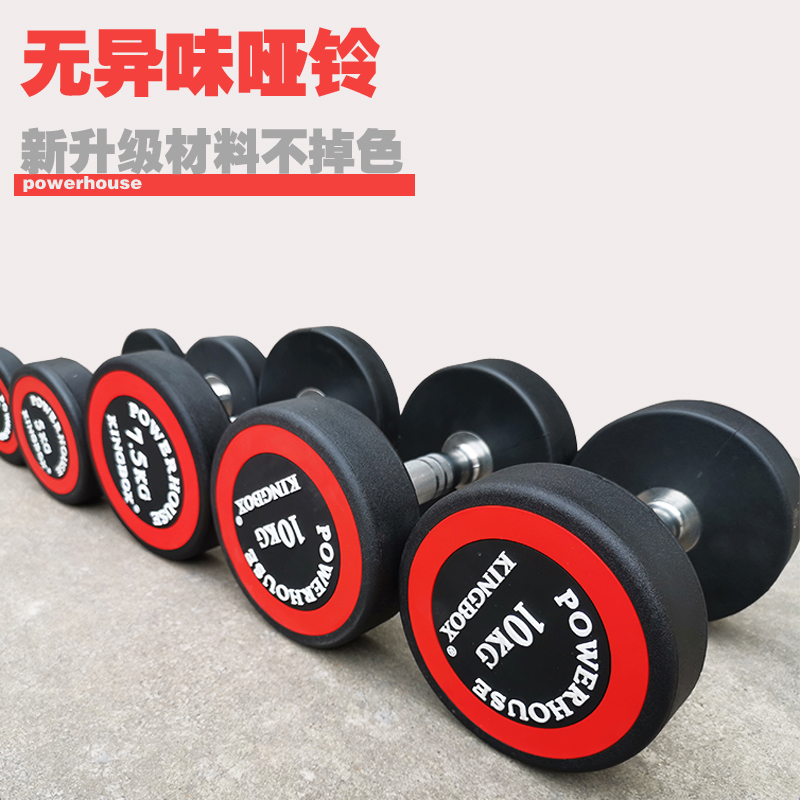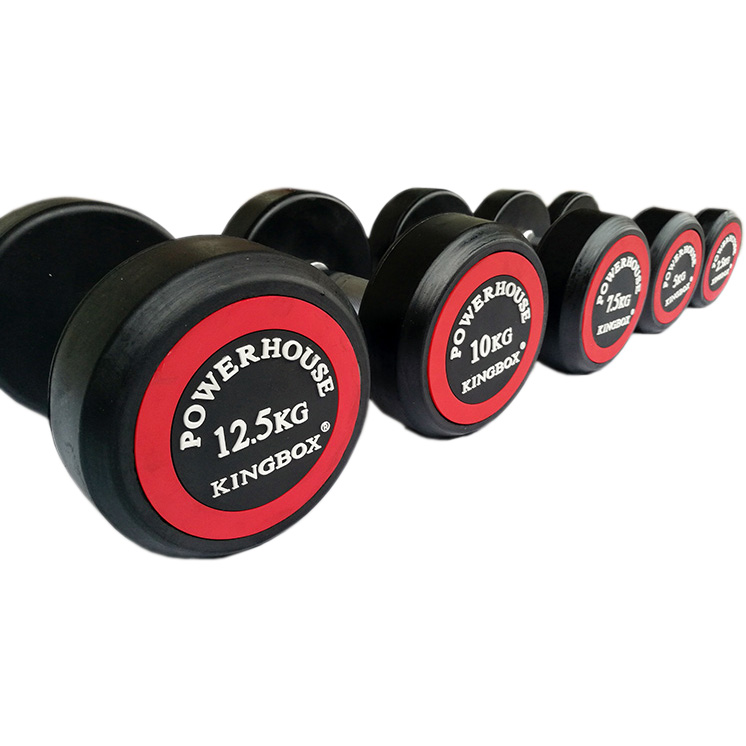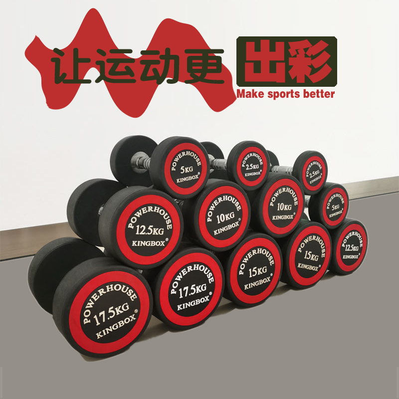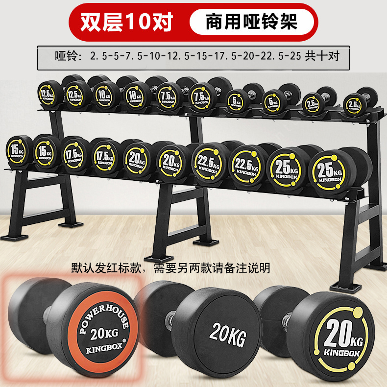 KINGBOX's new commercial private education fixed round head rubber-coated double-layer dumbbell rack set, single 15 kg x 2