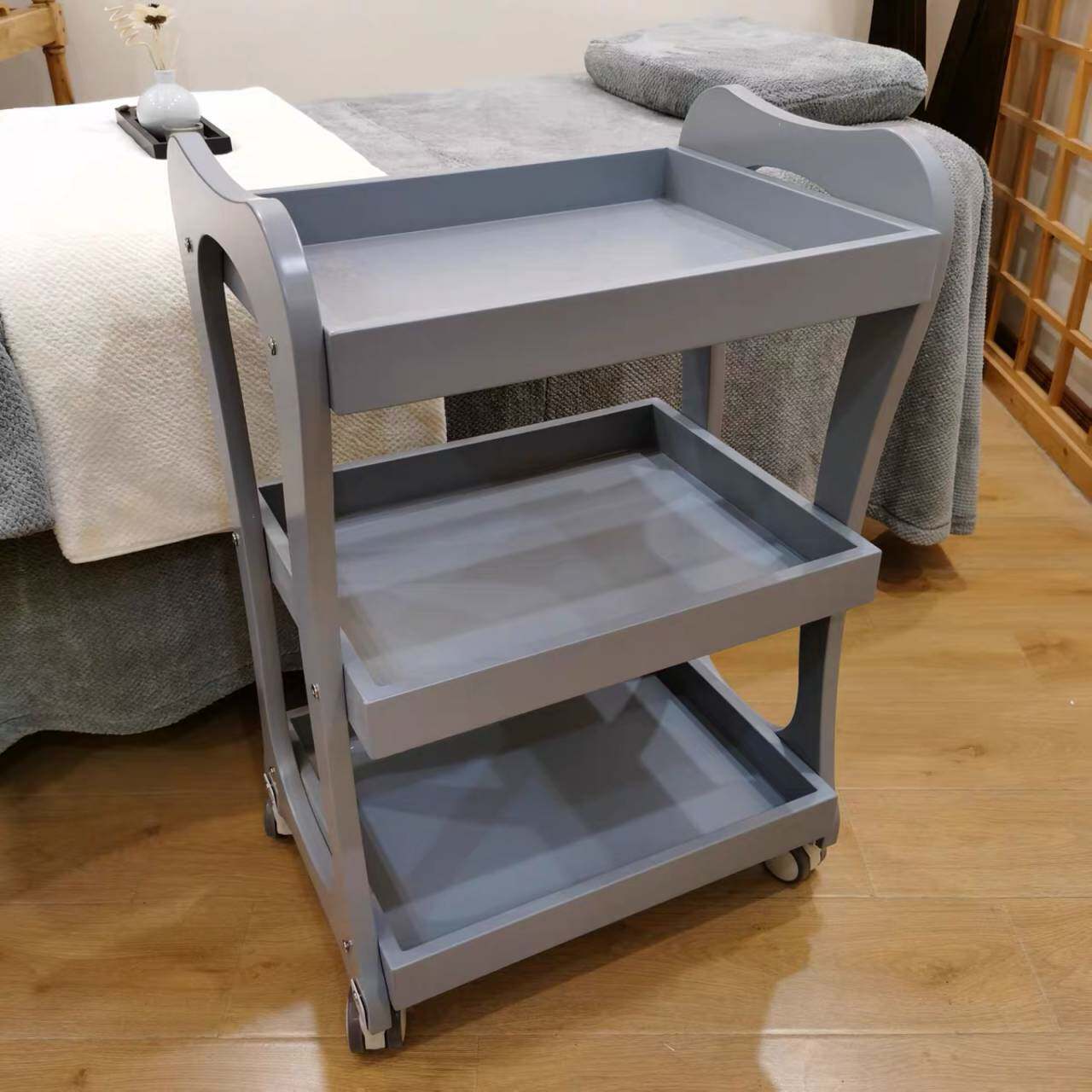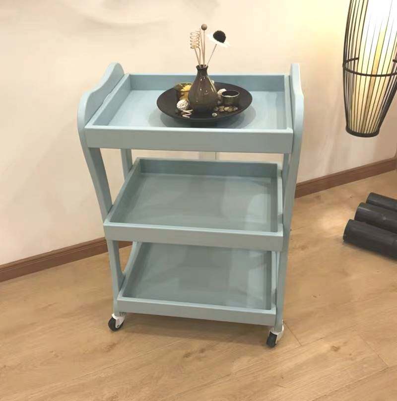 Premium Baked Paint Compression Solid Wooden Beauty Cart Mobile Tool Cart Nail Trolley Storage Rack Beauty Cart European