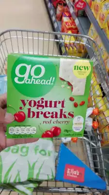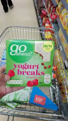 Spot UK supermarket to buy Go ahead yogurt coated pulp sandwich raisin cookie snack