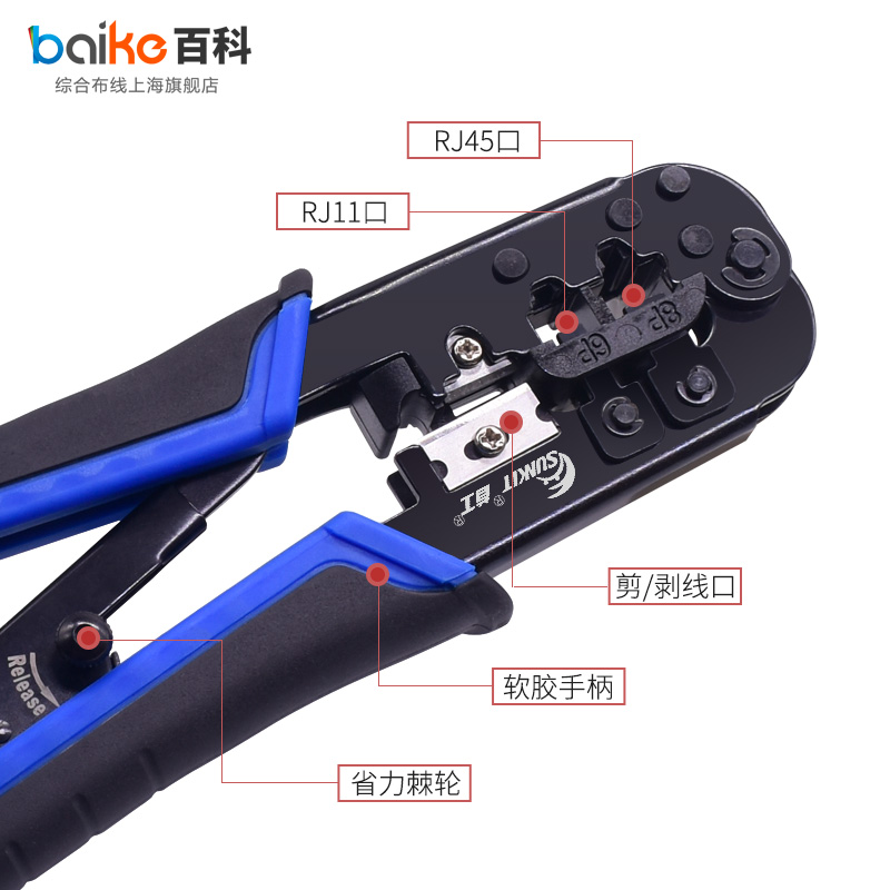 Press-line pliers first work SK-868DR Double use net route press wire pliers bicolor handle RJ45 Internet RJ11 Phone
