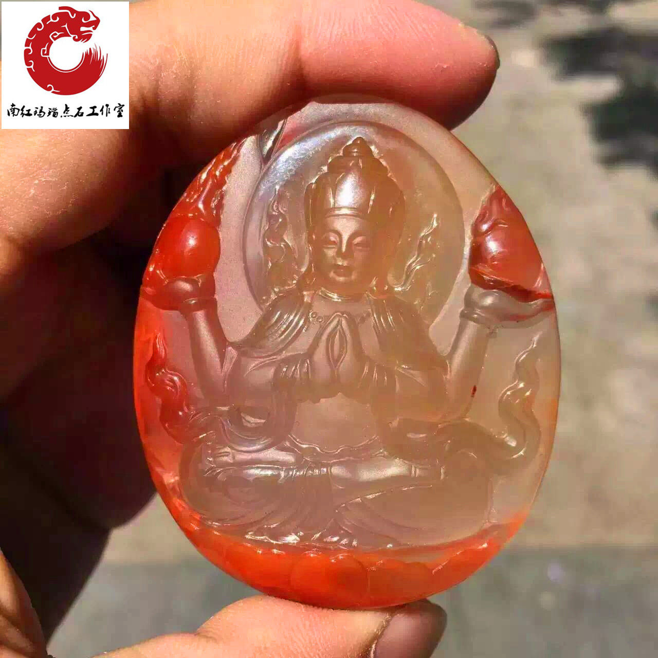 Sichuan Liangshannan red Agate high ice species lucky boy Guanyin pendant Lychee frozen Hongyun Dangtou Tongzi pendant