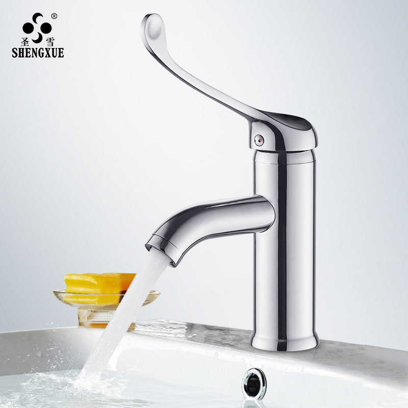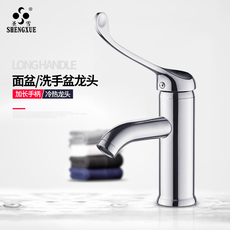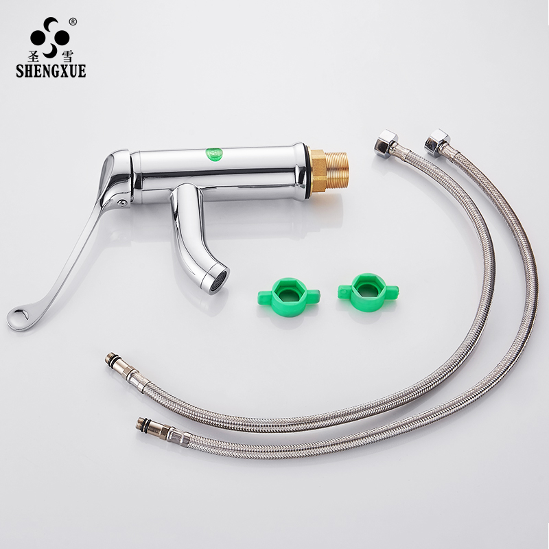 Copper hospital with hot and cold faucet and high long handle washbasin faucet elbow touch type laboratory faucet