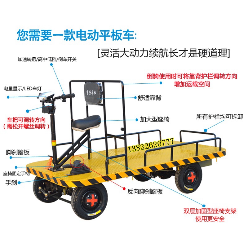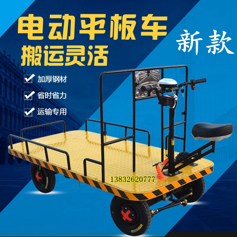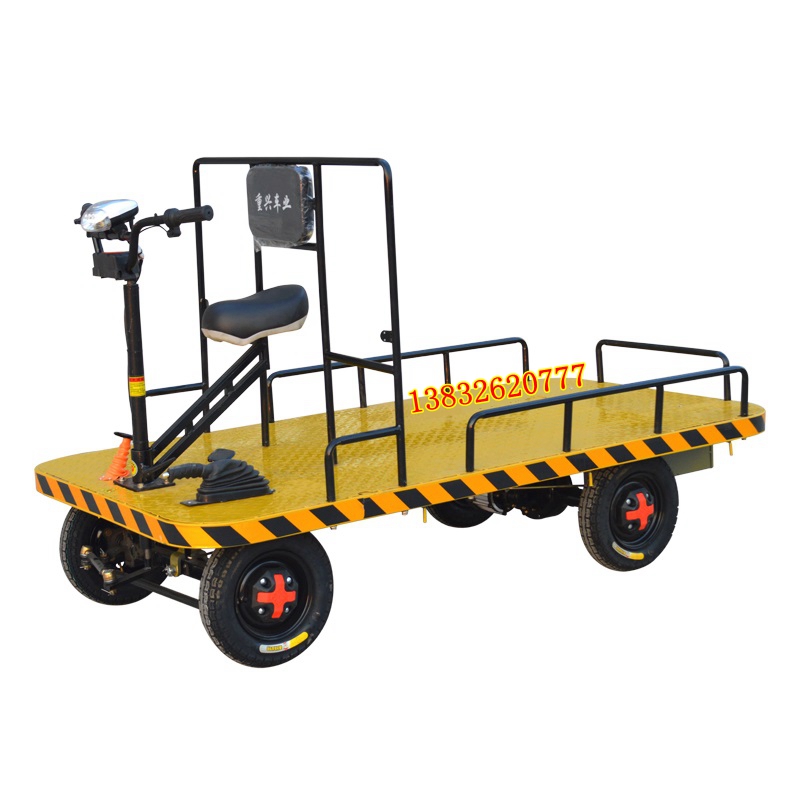 Electric Flat Car Reverse Riding Donkey Warehouse Freight Car Warehousing Transporter flat Trolley Flat Four Wheels Pull Wagon