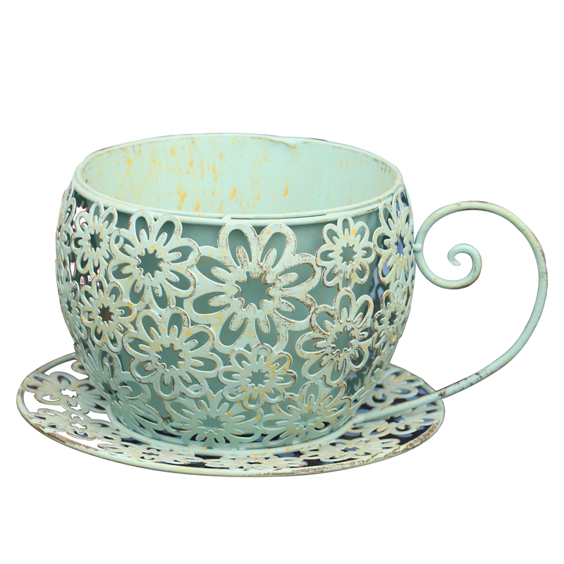 Wrought iron flower hollow teacup basin Multi-fleshy basin decorative outside basin Coffee cup shape