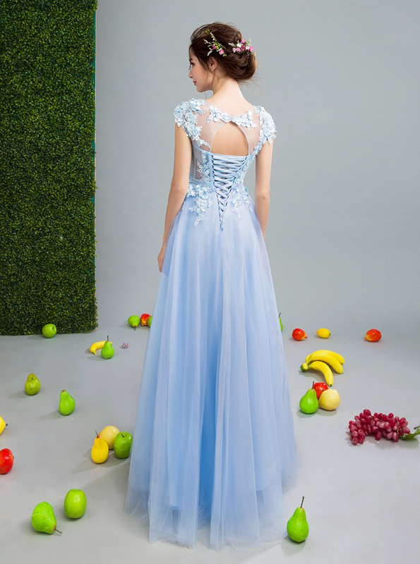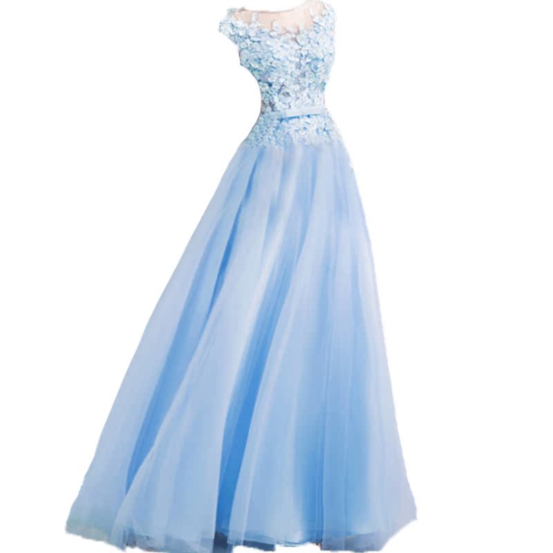 Angel Wedding Goddess Van Son Blue Handmade Petals Wedding Dress Bridesmaid Service Bride to Wine 136