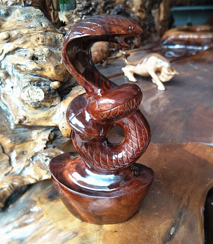 Iron-power wood Yuanbao Snake Wood Carving and Feng Shui Swing to open up the wood carving and decoration of the home office of the mascot