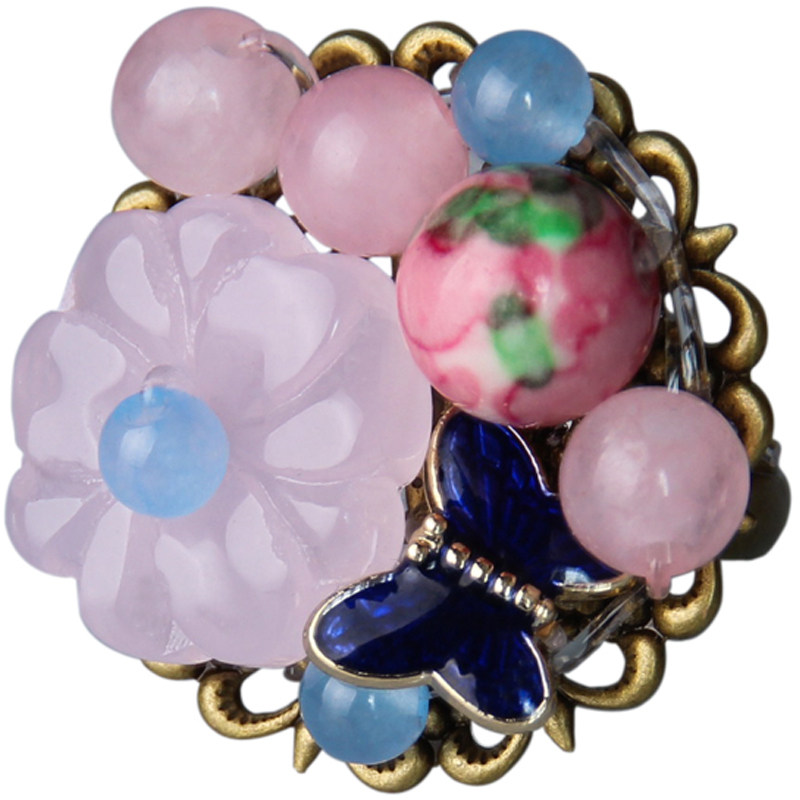 Retro Sweet Accessories Ring Butterfly Fengfei Finger Ring Pink Corn Glass Romantic Peach Flower