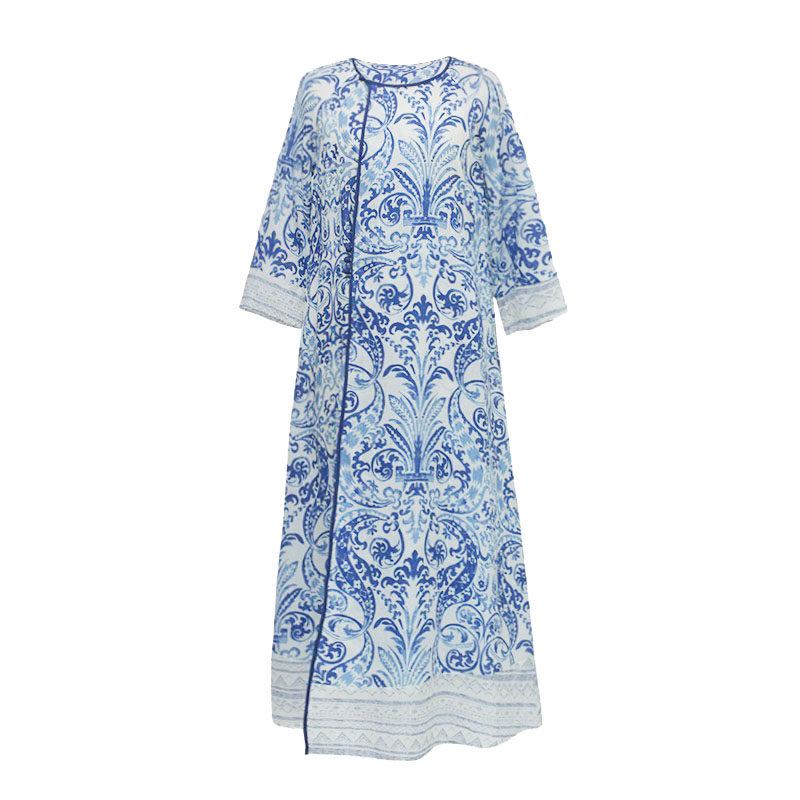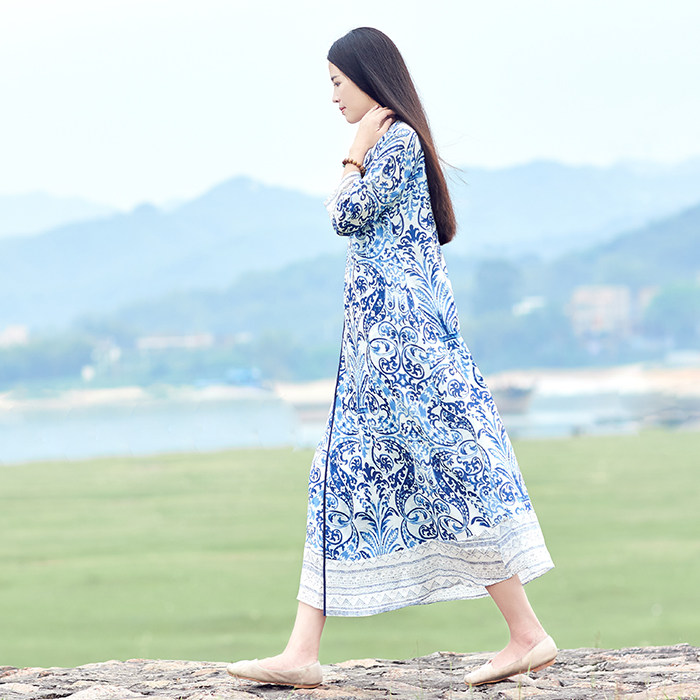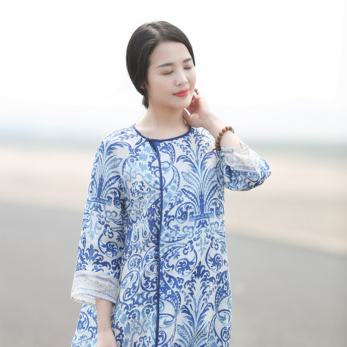 First cicadas retro original 2022 Summer women's clothing Chinese windy Chinese style printed national wind pure hemp cotton numb dress