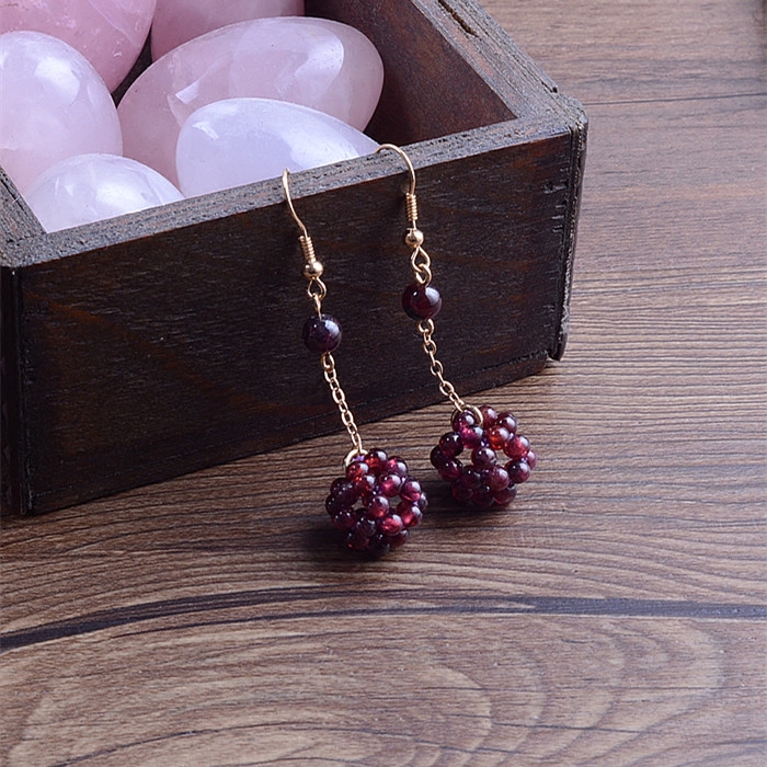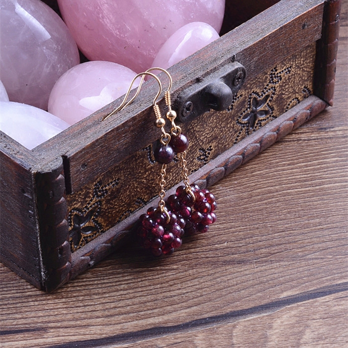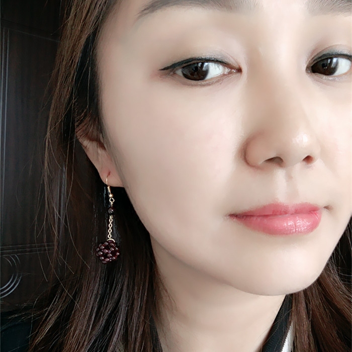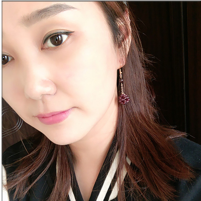 Earrings Woman Fashion Pomegranate Stone Floral Ball Temperament Long Prints Retro China Wind Handmade Ornaments