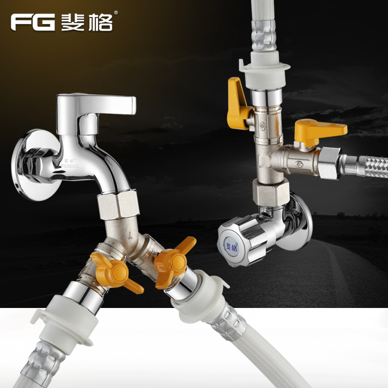 10%-2-way copper valve switch alive with tee water pipe splitting water distributor washing machine joint tap angle valve