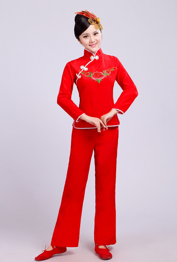 New Northeast Twist Song Costume Big girl middle-aged and elderly dance fan performance waist drum costume Square dance costume