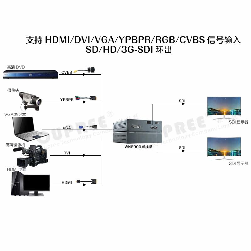 Oberry HDMI DVI VGA YPBPR CVBS to SDI multifunction HD converter can be adjusted resolution