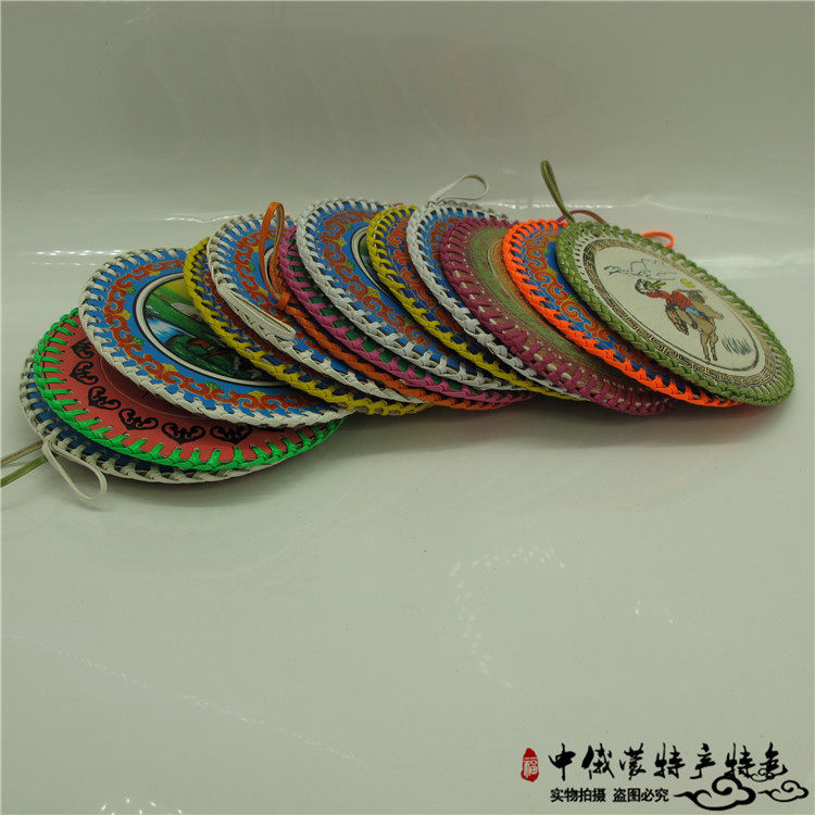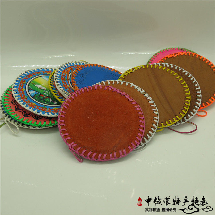 Mongolian characteristic leather mirror round cosmetic mirror Portable leather mirror Commemorative gift gift Inner Mongolia special round mirror