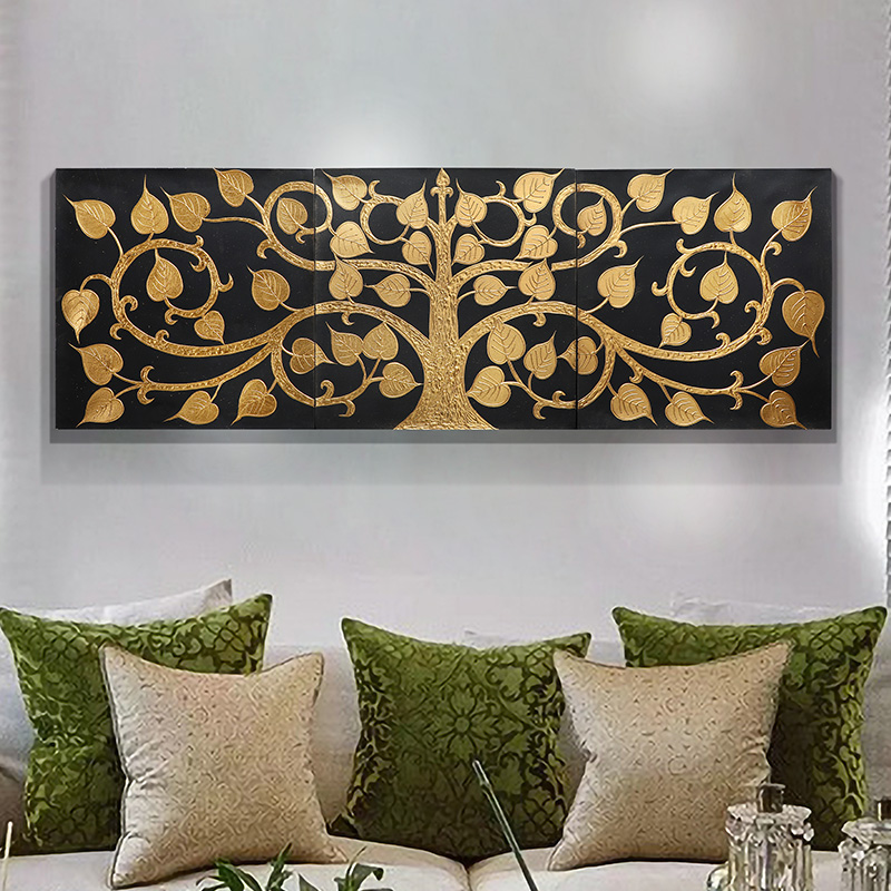 Exotic living room bedroom background wall decoration of the retro aisle corridor wall decoration wall of Bodhi leaf art hanging