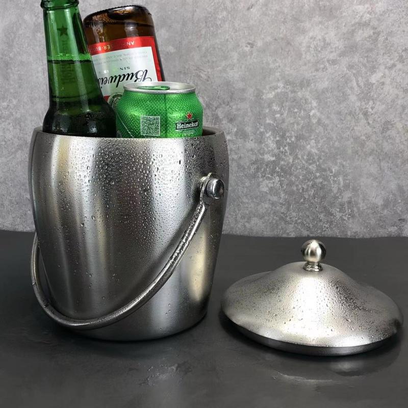Beer ice cubes Stainless Steel Ice Wine Barrel Hand Double Red Wine Ice Town KTV Bar Sheng Rice Bucket Utensils Ice Bucket