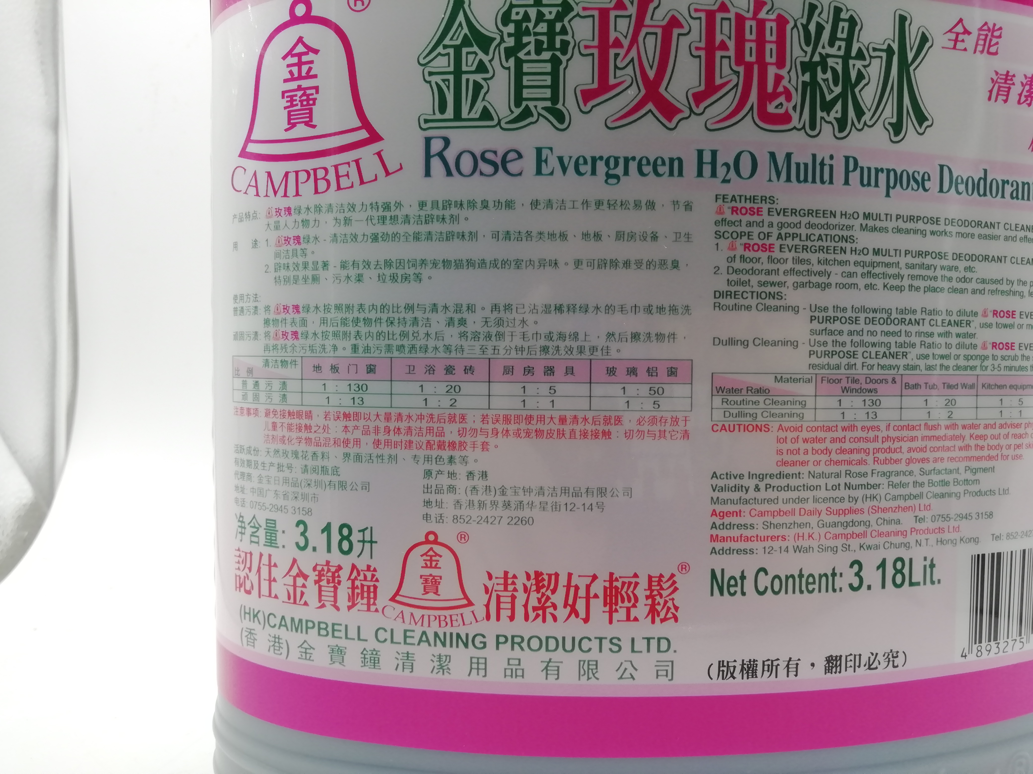 Hong Kong imported Jinbao Rose Green Water Jinbao Bell All-purpose cleaning disinfectant Floor household Cleaner 3180ml